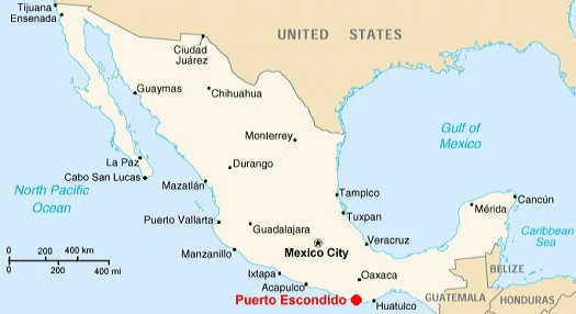 Fortunately for me I had an amazing world-traveling friend who was generous enough to invite me down to the peaceful surf-town of Puerto Escondido. Thanks so much Carrie! She suggested an inexpensive direct flight from Toronto to Huatulco, Mexico. From there I was instructed to exit the airport and walk towards the highway and wait for the coastal SUR bus. This bus was to take me 2.5 hours up to Puerto Escondido. "Get off at the smoothie bar that looks like a pirate ship." OK.